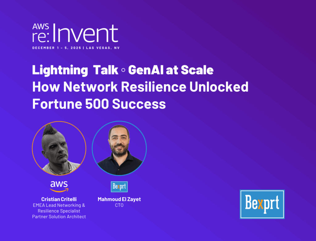 “Honoured to be joining Mahmoud El Zayet from Bexprt on stage at re:Invent this year to dive into one of the most important — and underestimated — enablers of GenAI at enterprise scale: network resilience.